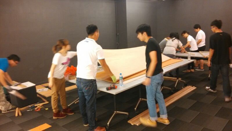 雖然是土炮了一點,不過我總算學懂一些搭景的技巧,木板要多厚,木庄要如果安裝,上油要用什麼,其實我真的很幸運,想做一件事,身邊便有一些隱藏的高人出手相助,不去做還不知道原來同事、舊同事、義工當中有人是做搭景的,有人是做土木工程,有些是裝修,哈哈,總知-是奇跡吧^^
